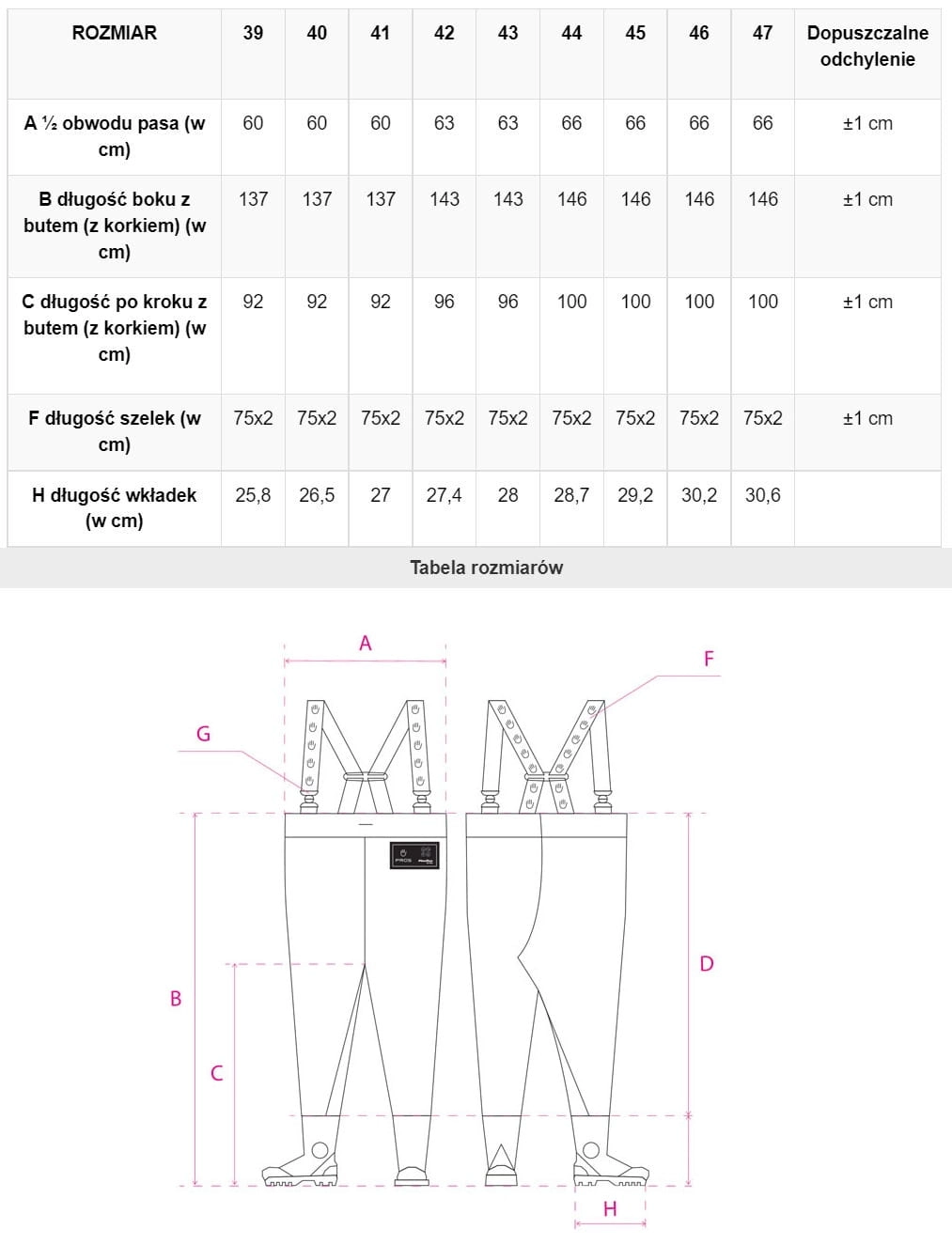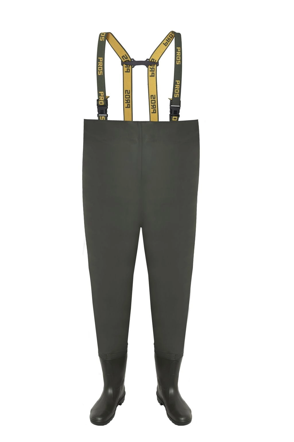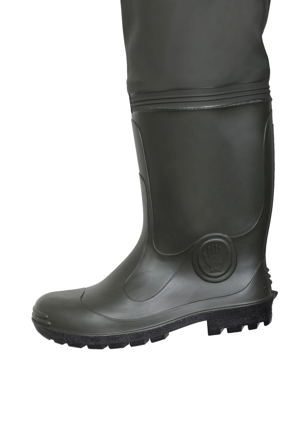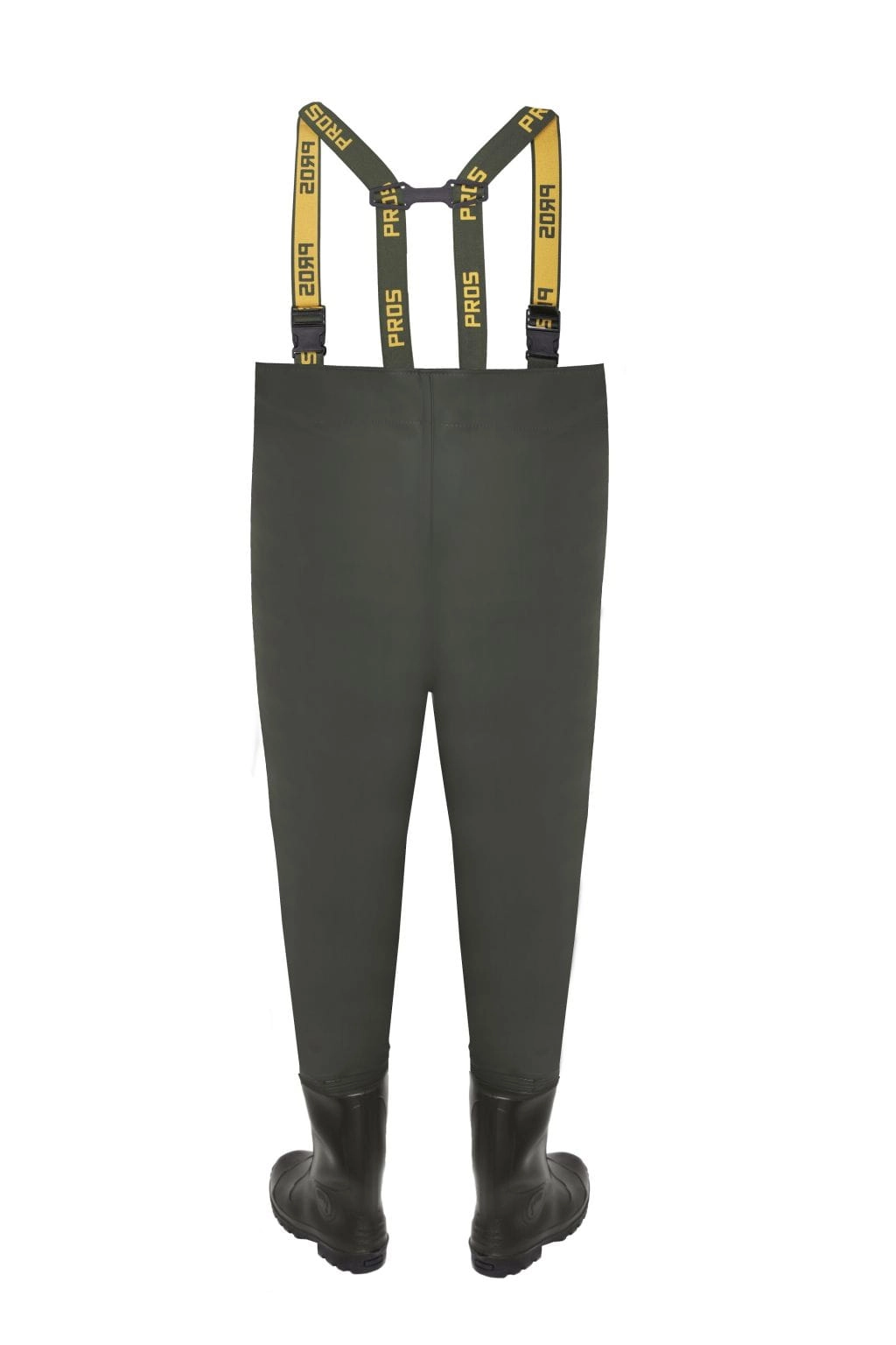 Spodniobuty wodoochronne z wgrzanymi na stałe wysokiej jakości kaloszami. Posiadają regulowane szelki z elastycznej, szerokiej gumy. Model produkowany z wodoochronnej, wytrzymałej tkaniny Plavitex Heavy Duty. Przeznaczony szczególnie dla wędkarzy i rybaków do użytku przy wszelkich pracach rybackich. Zapewniają skuteczną ochronę przed wodą. Technika obustronnego zgrzewania zwiększa wytrzymałość szwów.