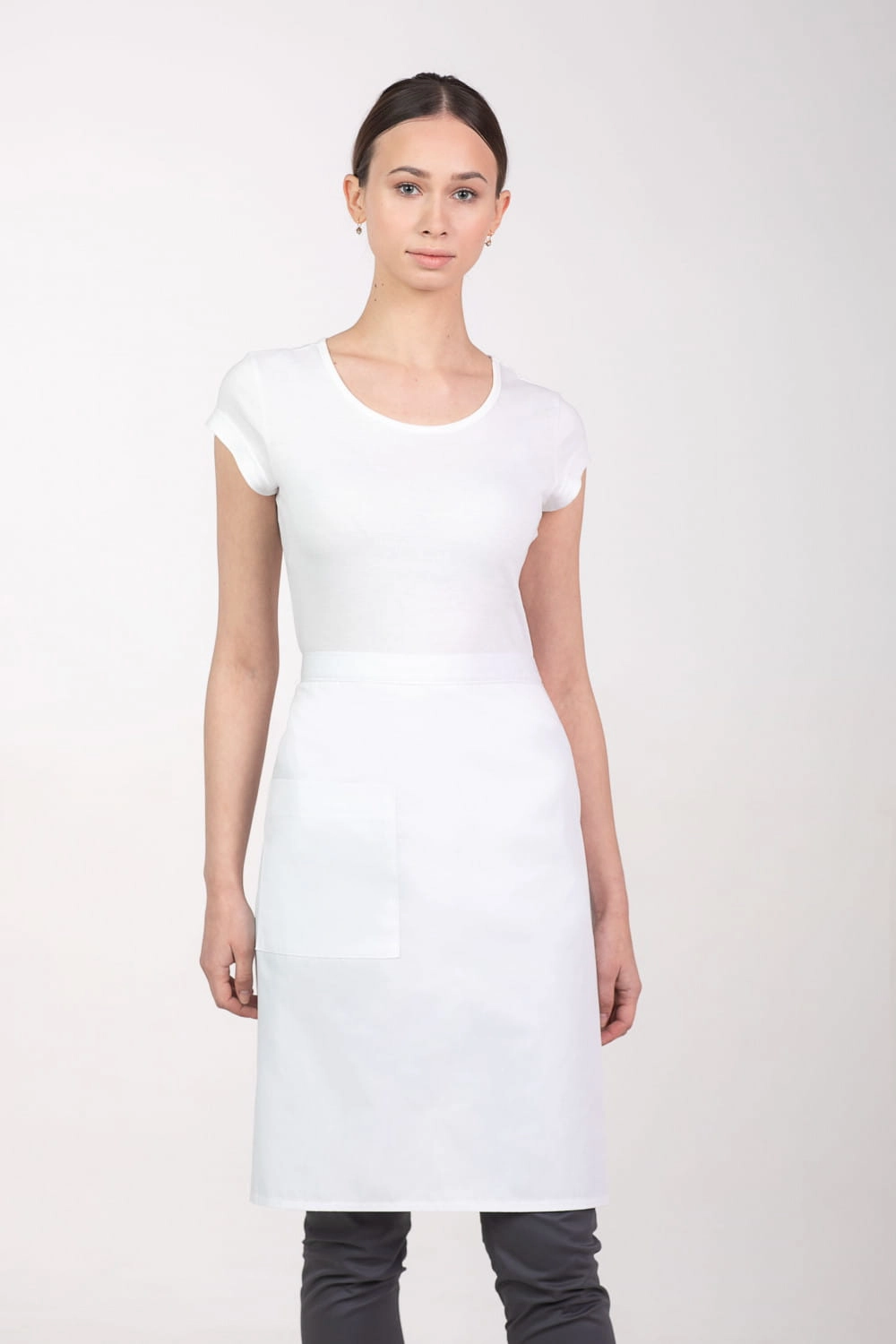 Fartuszek kelnerski, zapaska wiązany z tyłu. Posiada jedną dużą praktyczną kieszeń.