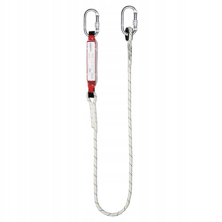 - amortyzator bezpieczeństwa ABM z linką bezpieczeństwa LB 101 o dł. 2 m i zatrzaśnikami stalowymi AZ 011